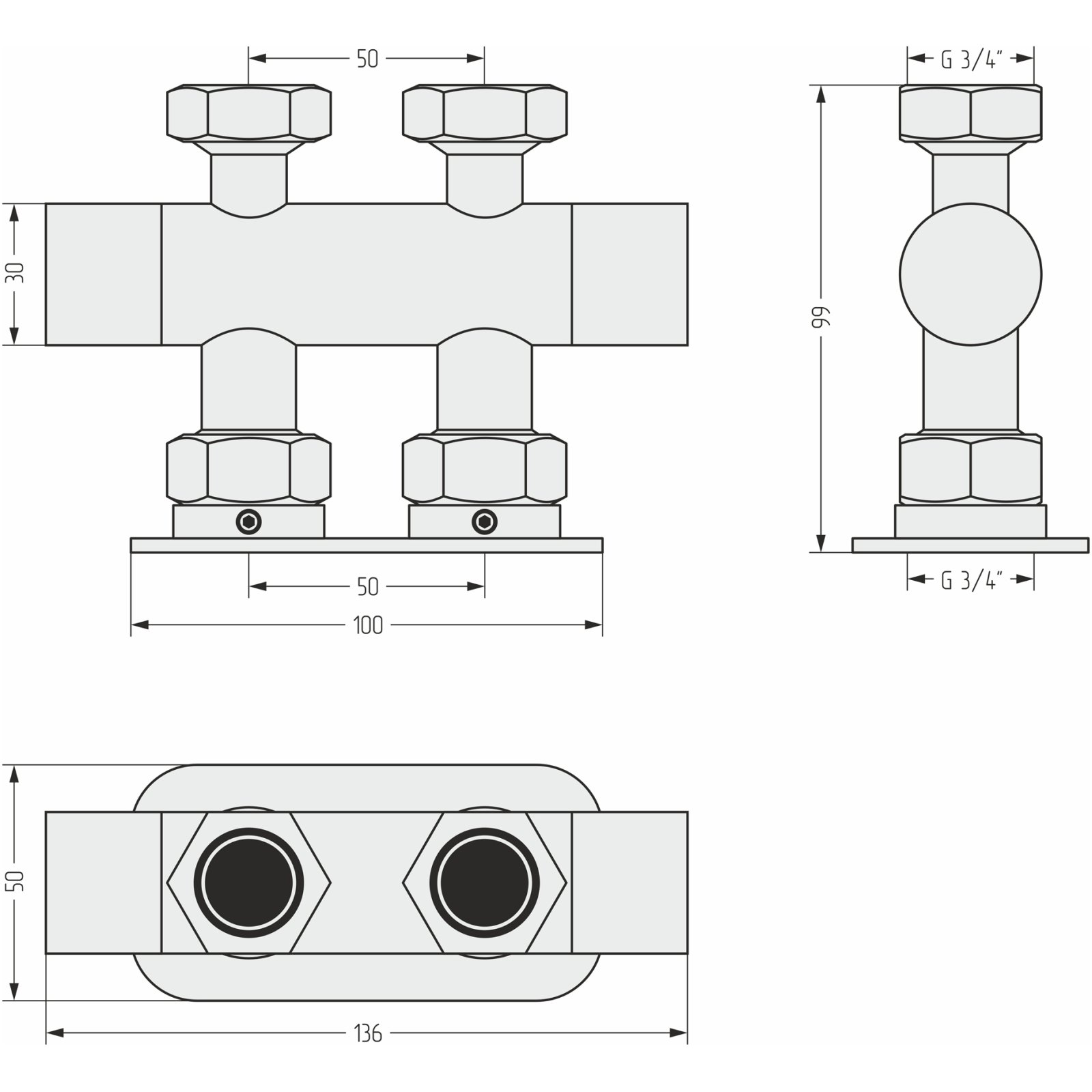 Стандарт подводки:2 х НГ G 3/4" / 2 х НГ G 3/4" p>
