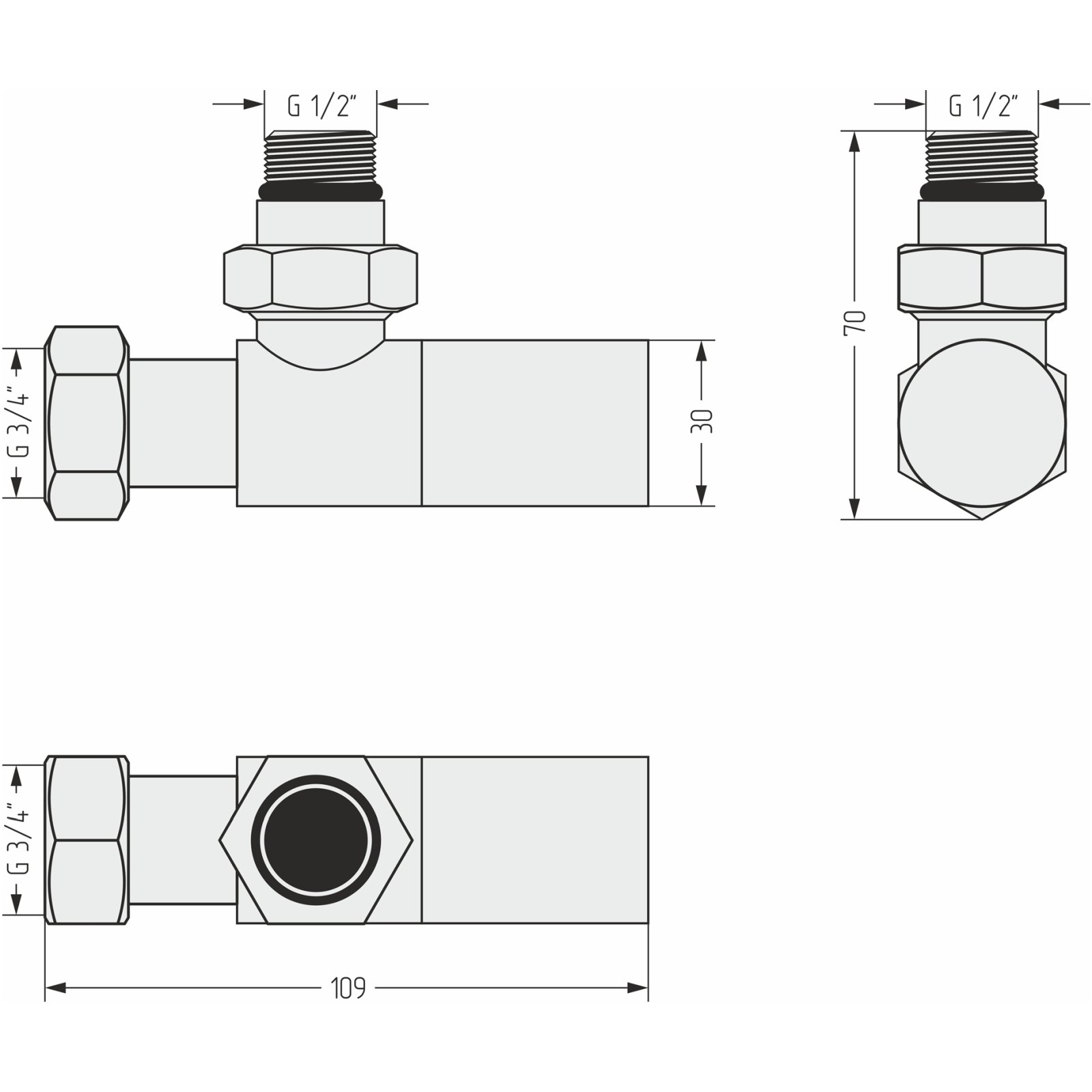 Вентиль Сунержа (Sunerga) прямой (крест) G 1/2 НР х G 3/4 НГ (Матовый белый) 30-1409-1234