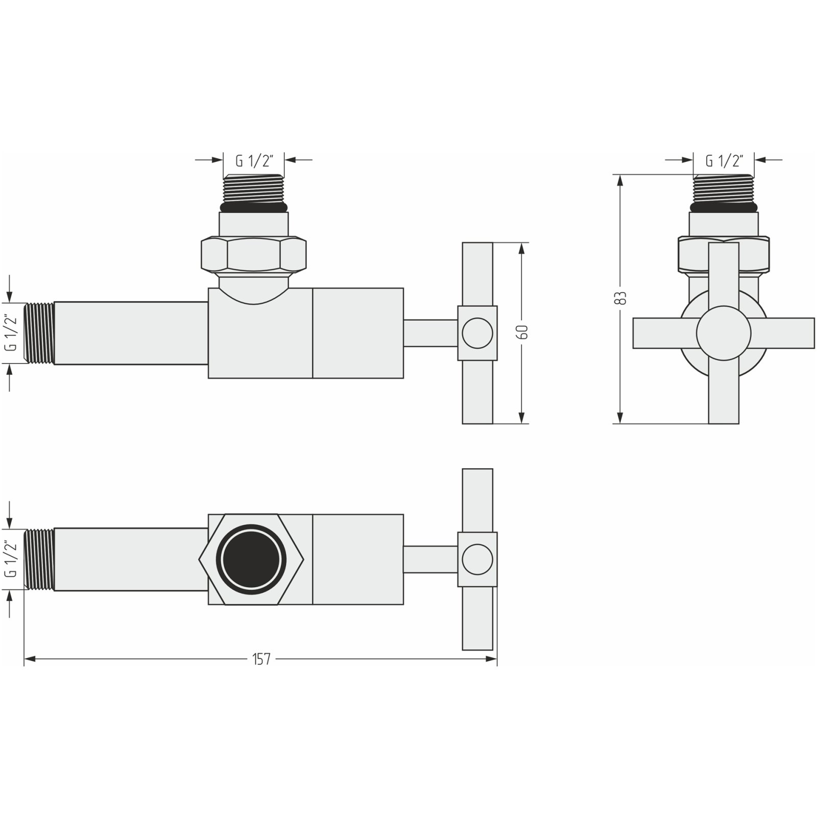 Вентиль Сунержа (Sunerga) угловой (крест) G 1/2 НР х G 1/2 НР (темный титан муар) 15-1408-1212