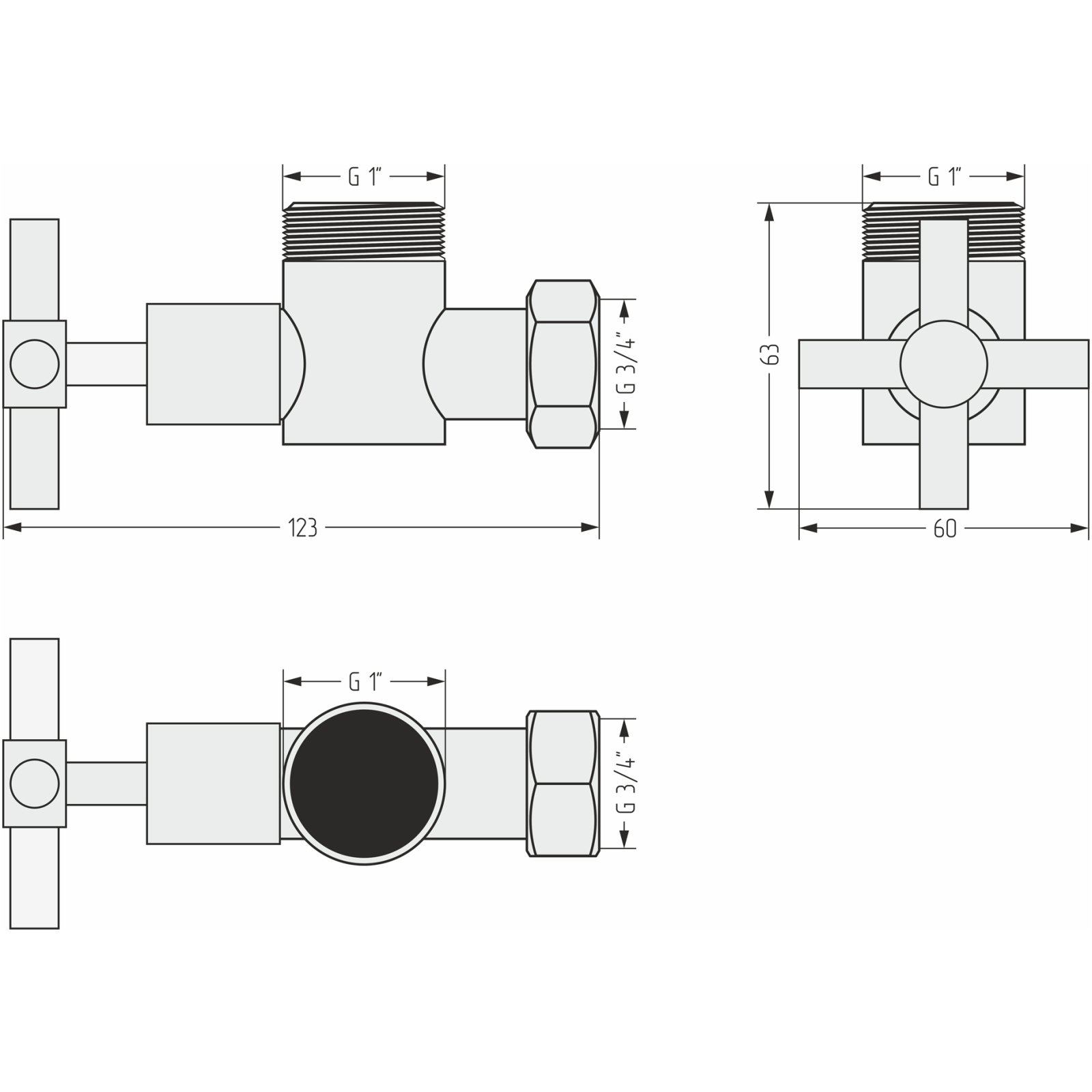 Вентиль Сунержа (Sunerga) угловой н/ж СУНЕРЖА (крест) G 1 нар.р. / G 3/4 н. г. (Без покрытия) 00-1304-0134