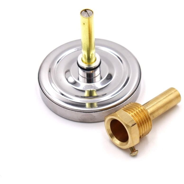 ViEiR Термометр 1/2", горизонтальный 63 мм, 0-120 С° с гильзой 50 мм (YL18). ViEiR Термометр, биметалический способ принцип измерения температуры с накладным подключением применяют для измерения температуры до + 120 °C жидкостей или газов, контролируемая среда не должна быть вязкой или кристаллизующейся.