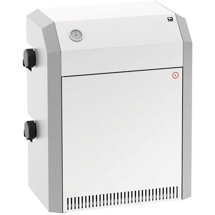Котел серии «Патриот» с закрытой камерой сгорания мощностью 7.5 кВт может работать в системе отопления с рабочим давлением до 1,5 атм. Котел не требует подключения к электрической сети Прямоугольный теплообменник изготовлен из высококачественной стали толщиной 2 мм, соответствующей европейскому стандарту EN 10130:2006, американскому стандарту ASTM A 1011 и российским ГОСТ 16523-97 и ГОСТ 9045-93 Оснащение оригинальными компонентами газогорелочного устройства и автоматикой безопасности, а также инжекционной микрофакельной горелкой Покрытие антикоррозийной эмалью (температура воздействия 950°С) и обработка ингибирующим составом защищают теплообменник от агрессивных факторов и растворов солей Высокий КПД за счет увеличения площади теплообмена и применения инновационной конструкции турбулизаторов для максимальной задержки отходящих газов Защита от прерывания тяги, сажеобразования, задувания котла Коаксиальная система дымоудаления, не требующая организации стационарного дымохода Смотровое окно контроля за горением основной и запальной горелок Удобство обслуживания котла за счет применения легкосъемной верхней панели