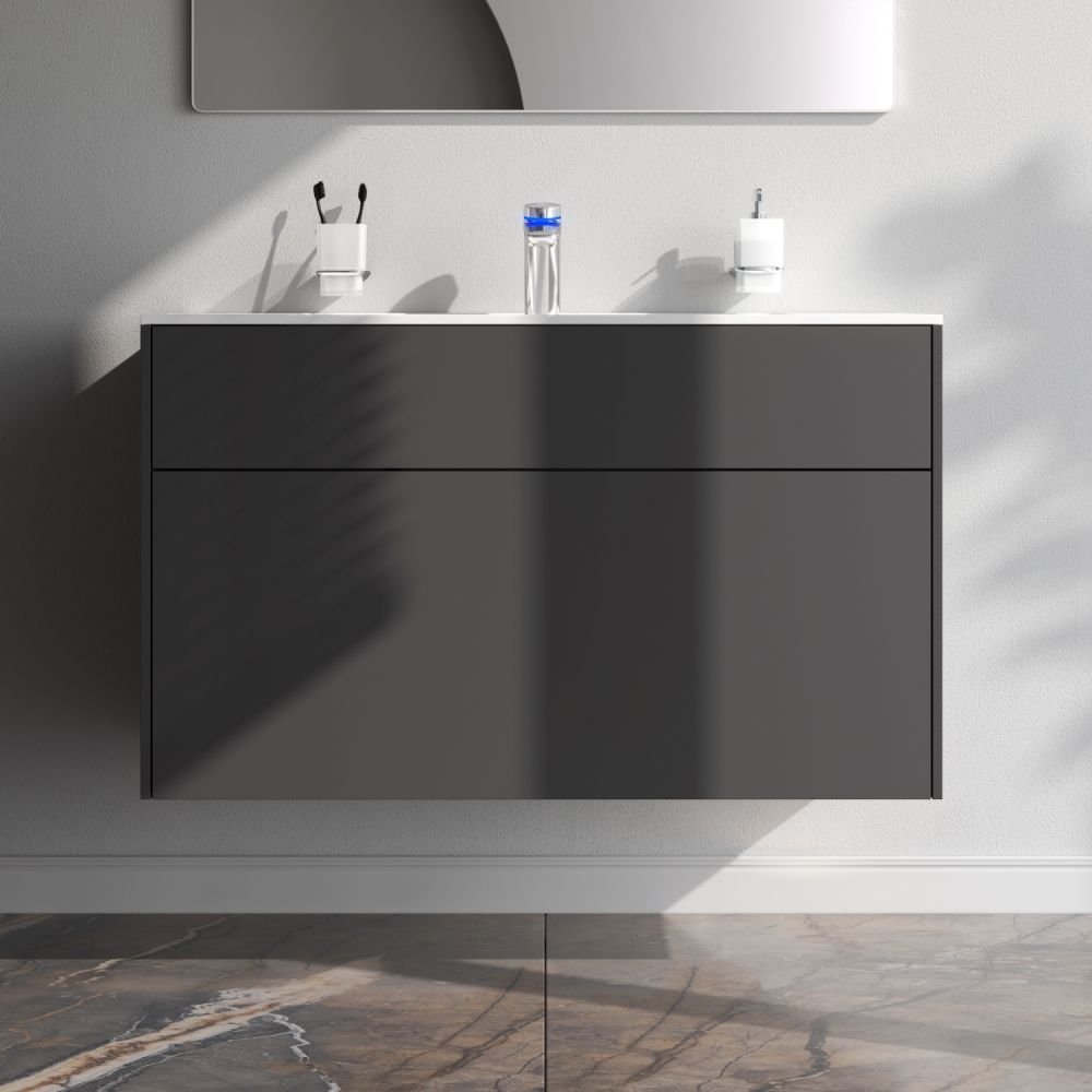 База под раковину Am.Pm (Ам.Пм) Inspire V2.0, подвесная, 100 см 3 ящика, push-to-open, графит матовый, M50AFHX1003GM