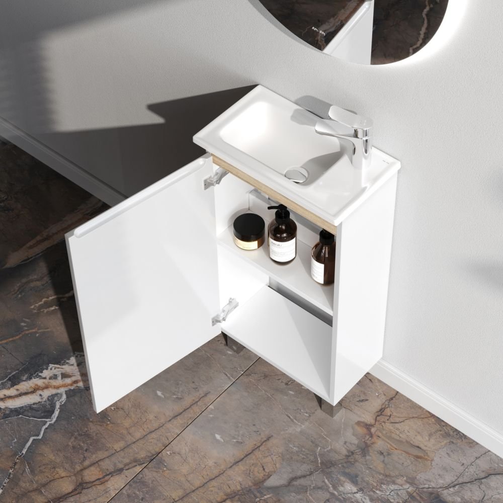 Впервые на рынке – дизайнерская коллекция сантехники которую может позволит себе каждый. Самое эстетичное сочетание цветов и фактур от дизайн-бюро Danelon Meroni (Великобритания & Италия): белые глянцевые фасады дополнены отделкой под светлое дерево. Функциональный органайзер в первом ящике позволит хранить необходимые косметические средства под рукой и в полном порядке. Внутреннее покрытие каждого ящика выполнено в современном цвете Anthracite и имеет противоскользящее покрытие. Встроенная керамическая раковина белоснежного цвета оснащена специальным бортиком для защиты от пролива воды за мебель. Экологически чистые и удивительно долговечные полиакриловые эмали – специальная технология покраски в 7 слоев превосходит технологию нанесения автоэмали у ведущих немецких марок и обеспечивает насыщенный цвет в течение всего срока службы (от 10 лет). Боковины базы выполнены из влагостойкой ЛДСП что позволяет продлевать срок службы мебели до максимального в индустрии. База совместима с раковиной: артикул M85AWCC0452WG. Приобретается отдельно.
