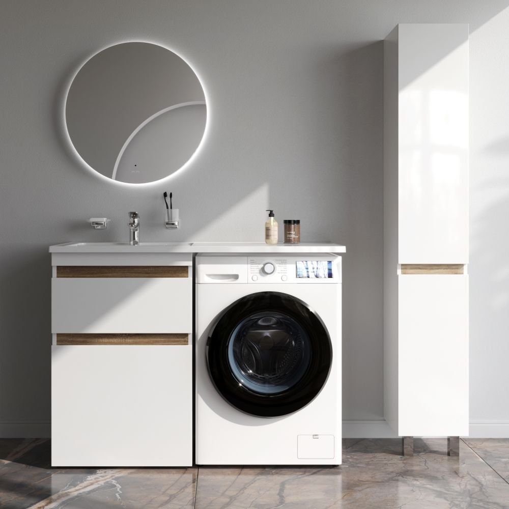 Долгожданное расширение в мебели X-Joy. Самое оптимальное и функциональное решение для организации пространства ванной комнаты с учетом размещения в ней стиральной машины. Подходит для интеграции с узкими стиральными машинами (глубиной от 32 до 45 см). Эстетичное сочетание цветов и фактур от дизайн-бюро Danelon Meroni (Великобритания & Италия): белые глянцевые фасады дополнены отделкой под светлое дерево. Глубокие удобные ящики позволяют организовать и хранить все необходимые средства под рукой. Внутреннее покрытие каждого ящика выполнено в современном цвете Anthracite и имеет противоскользящее покрытие. Накладная раковина из литьевого мрамора белоснежного цвета оснащена съемной мыльницей специальным бортиком для защиты от пролива воды за мебель и скрытым сливом. Экологически чистые и удивительно долговечные полиакриловые эмали – специальная технология покраски в 7 слоев превосходит технологию нанесения автоэмали у ведущих немецких марок и обеспечивает насыщенный цвет в течение всего срока службы (от 10 лет). Боковины базы выполнены из влагостойкой ЛДСП что позволяет продлевать срок службы мебели до максимального в индустрии. База совместима с раковины: артикулы M85AWPR1201WG M85AWPL1201WG. Приобретаются отдельно.