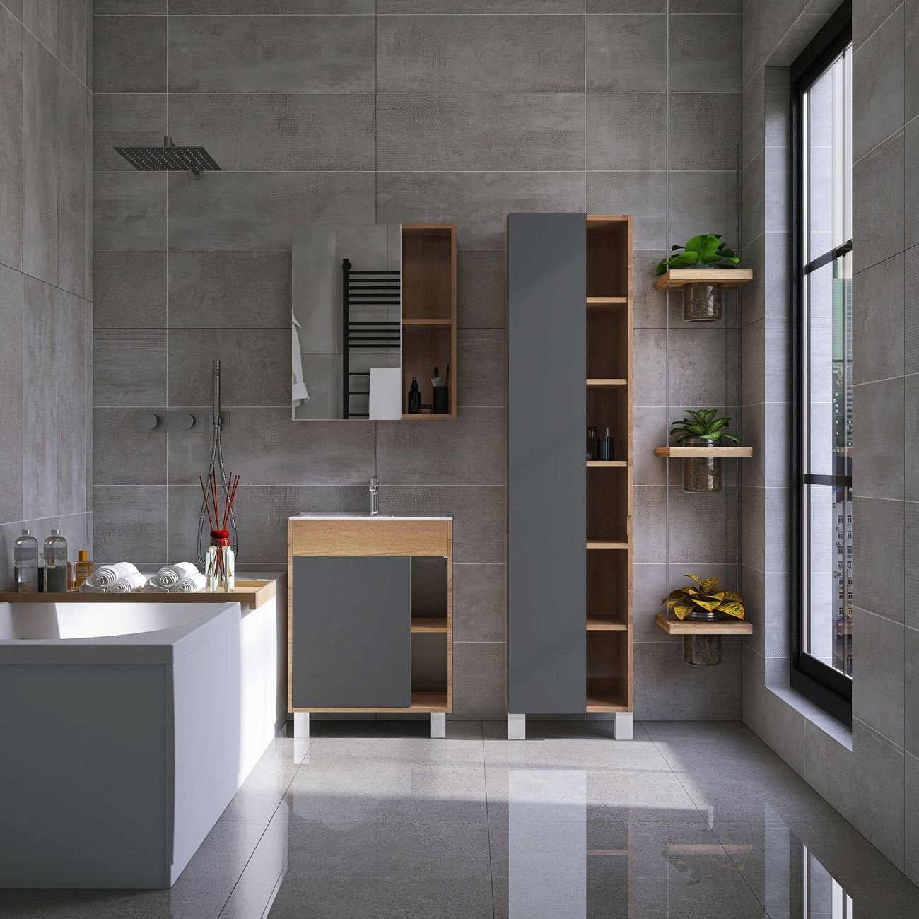 Пенал Viant (Вайант) Бостон 45, VBOS450G-PEN 1900х450х300 напольный, правый/левый, графит/дуб вотан