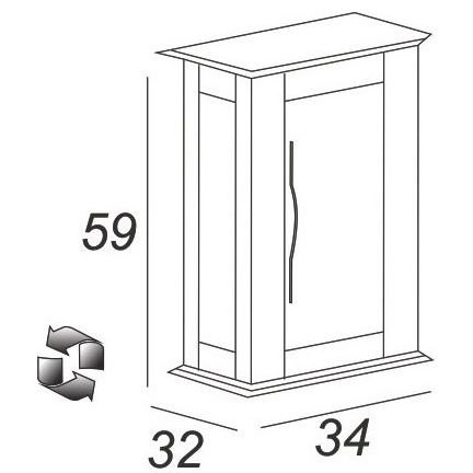 Шкафчик подвесной Cezares (Цезарис) Tiffany с одной распашной дверцей, реверсивный 54961 Nero grafite, 34x32x59 см