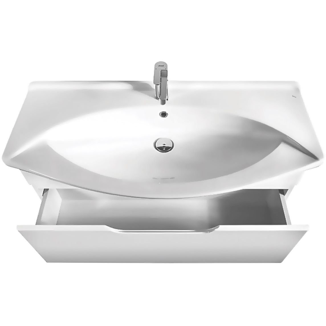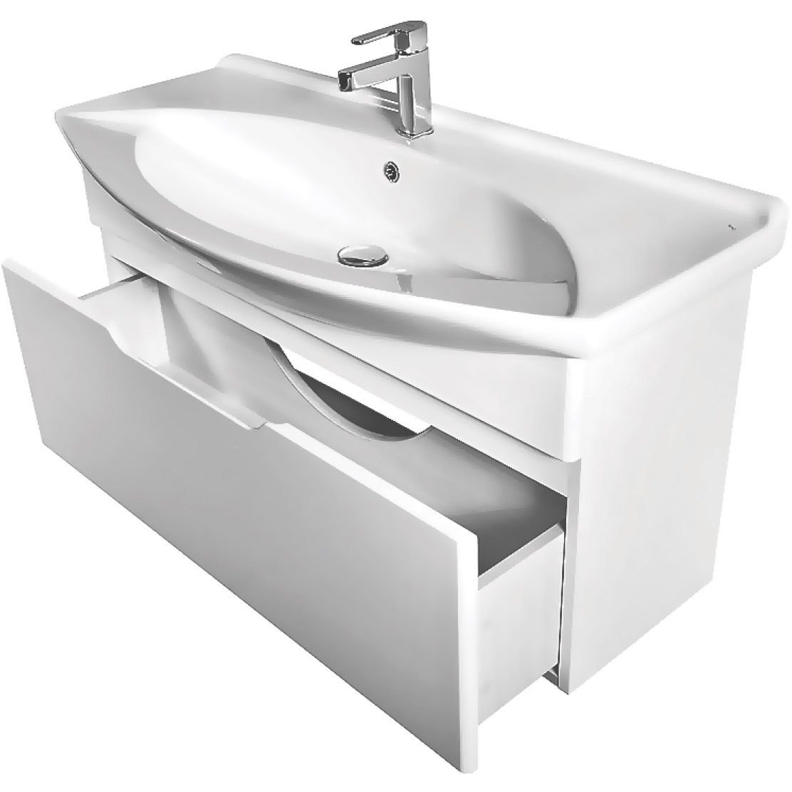 Эта коллекция с ящиками подходит не только для ванных малых размеров, но и для больших, в которых возможно разместить тумбы шириной 120 см.
