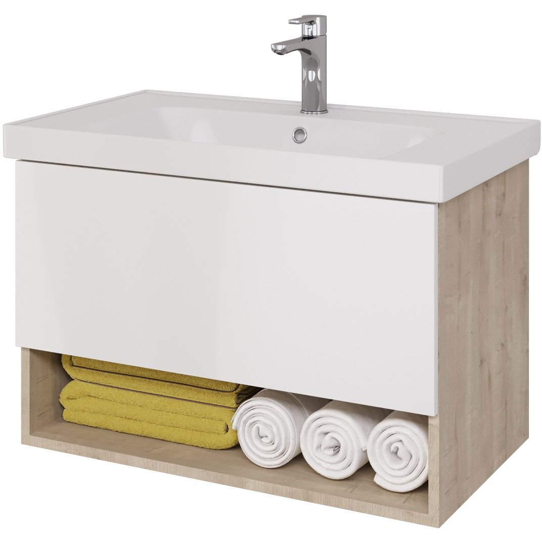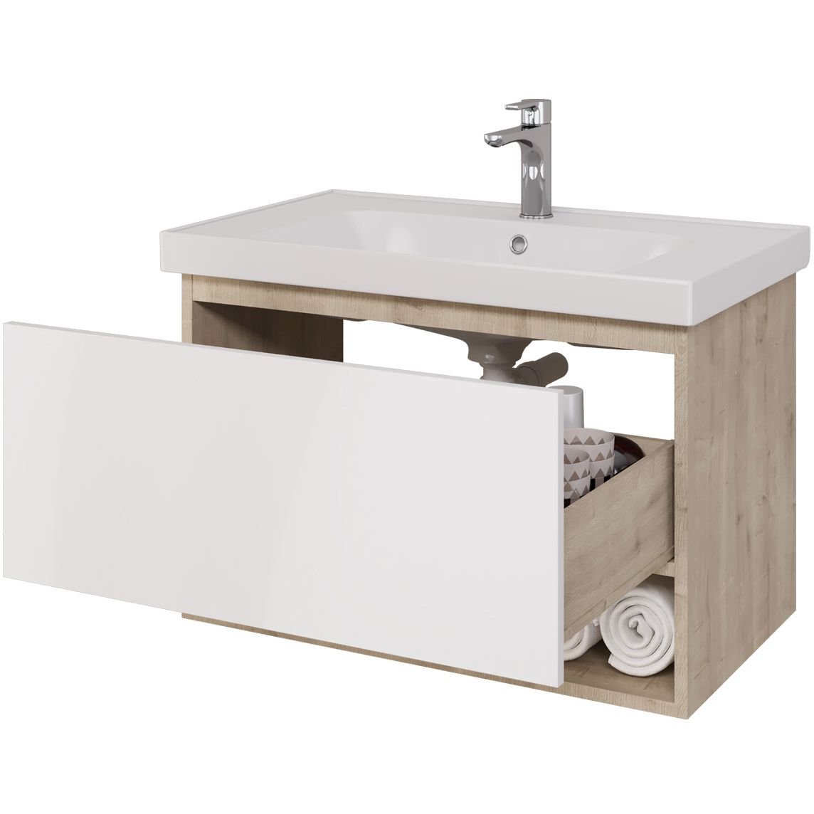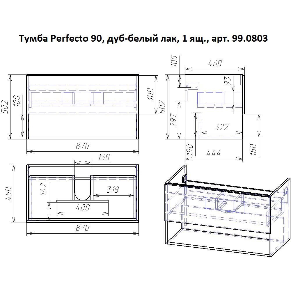 Тумба Dreja (Дрея) Perfecto 90 см подвесная дуб эврика/белый глянец 1 ящик ум. Grace 90 (99.0813)