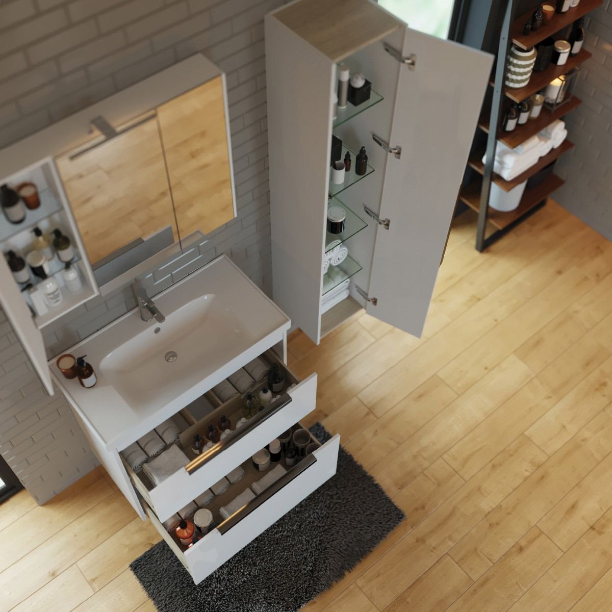 Тумба Dreja (Дрея) Prime 70 см подвесная/напольная 2 ящика белый глянец (99.9301)