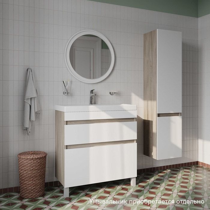 Тумба напольная Iddis (Иддис) Zodiac с ящиками 80 см белая/под дерево ZOD8ABFi95 подходит ум. 3508000i28