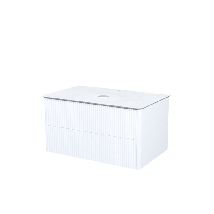 Стильная подвесная тумба для ванной комнаты Aiger с выдвижными ящиками и столешницей из керамогранита – красивый лаконичный дизайн вне времени с трендовой вертикальной фрезеровкой.