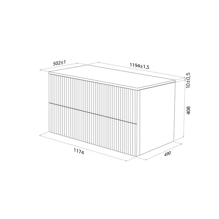 Большая подвесная тумба для ванной комнаты Aiger в классическом белом цвете с выдвижными ящиками и столешницей из керамогранита – красивый лаконичный дизайн вне времени с трендовой вертикальной фрезеровкой.