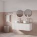 • Влагостойкая матовая столешница из тонкого сверхпрочного керамогранита стильного цвета "светло-серый бетон" повторяет радиус скругления угла тумбы. Край филигранно запилен под 45 градусов и отполирован до глянцевого блеска – выглядит эстетично и при этом безопасен. Без отверстий – можно самостоятельно выбрать расположение раковины и смесителя (одного или двух комплектов).