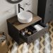 • Два просторных выдвижных ящика закрываются плавно и бесшумно благодаря высококачественным скрытым направляющим с доводчиками Hettich. Внутри ящики графитового цвета – стильно и практично.