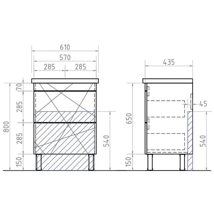 Тумба Vigo (Виго) Geometry 2-60, tn.bsf.GEO.FOS.60.2Y напольная, 2 ящ. (под раковину Фостер 60) , бетон