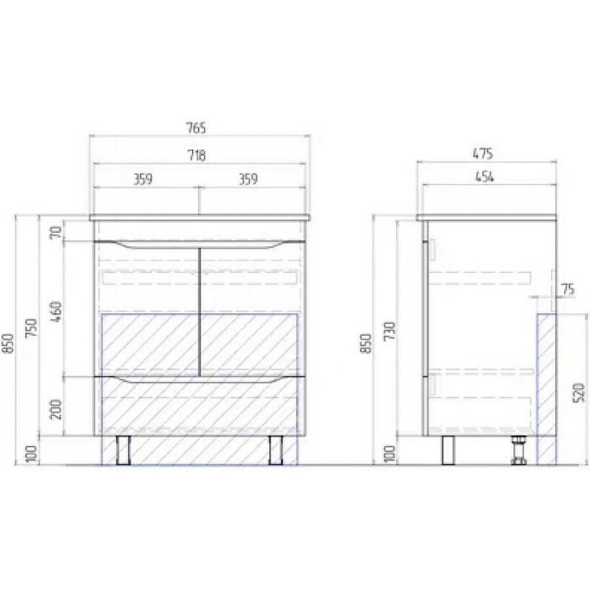 Тумба под раковину Vigo Grani 75 tn.GRI.OSK.75.2D.1Yдубсонома.