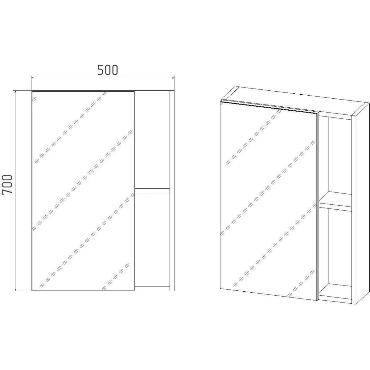 Зеркальный шкаф Viant (Вайант) Бостон 50, VBOS50-ZSH 700х500х160 правый/левый, без подсветки, дуб вотан