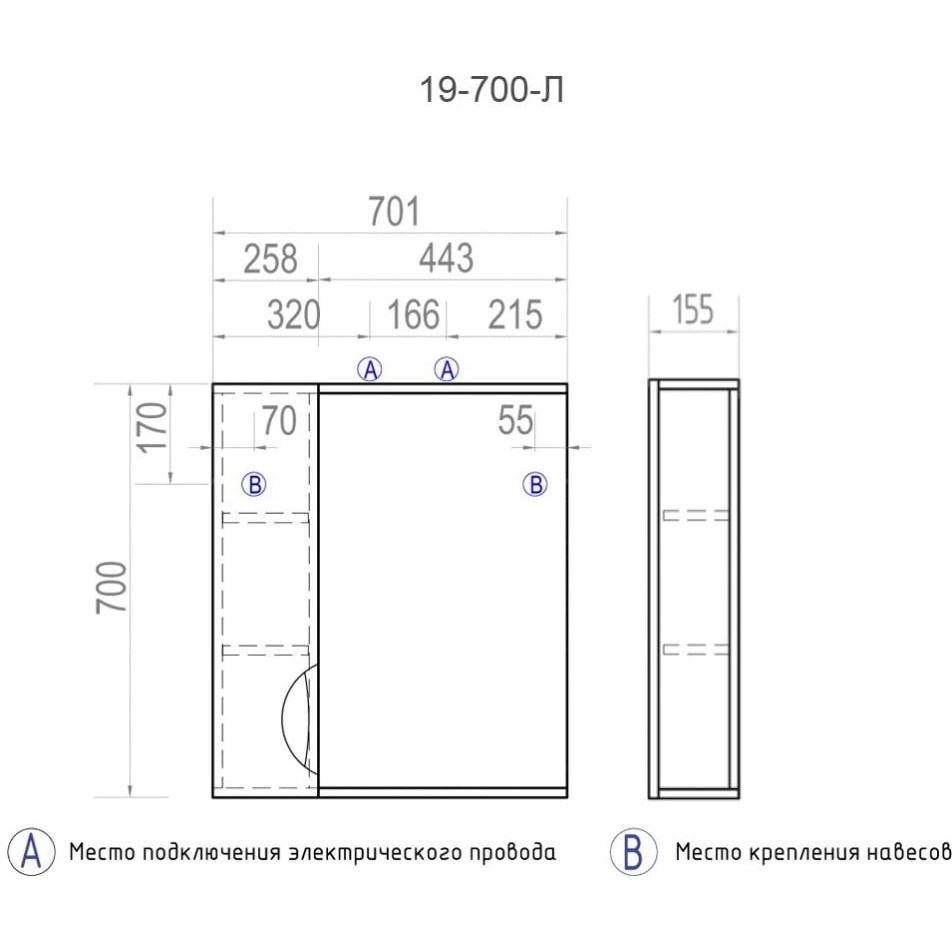 Зеркальный шкаф Vigo (Виго) Callao 70, z.CAL.70.L.El левый, с подсветкой, белый