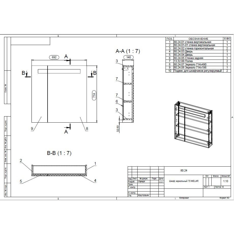 Зеркало-шкаф Cersanit (Церсанит) Melar 70 с подсветкой универсальный белый (SP-LS-MEL70-Os)