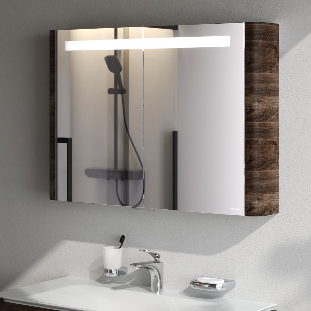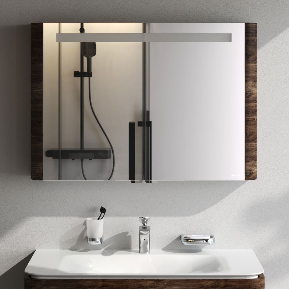 Коллекция шедевров: характерная форма в стиле dynamic organic тщательно проработана и доведена до совершенства в каждом продукте. Особый наиболее эстетически совершенный радиус фасада: ультрамодное и технологически сложное решение которое могут воплотить единицы фабрик. Инновационная LED-подсветка с сенсорным управлением светом с возможностью переключения с теплого на холодный. Двойная функциональность: двойные зеркальные дверцы.