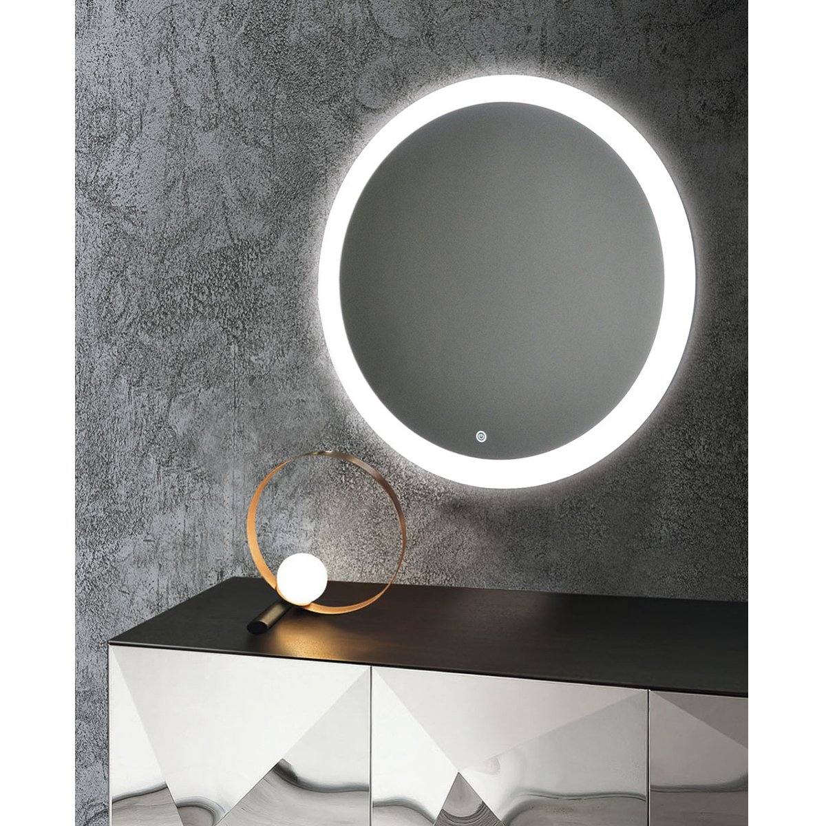 Зеркало оснащено сенсорным выключателем с функцией плавного диммирования, с запоминанием последнего значения. Короткое касание светящейся области включают/выключают подсветку, длительное касание меняет яркость свечения.
