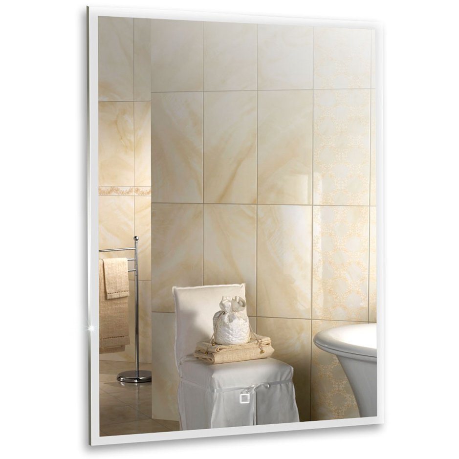 Зеркало оснащено сенсорным выключателем с функцией плавного диммирования с запоминанием последнего значения. Короткое касание светящейся области включает/выключает подсветку, длительное касание меняет яркость свечения.