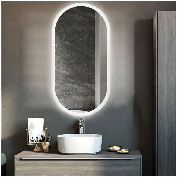 Зеркало с LED-подсветкой и сенсорным выключателем капсульной формы станет отличным украшением ванной комнаты, гостиной или спальни.