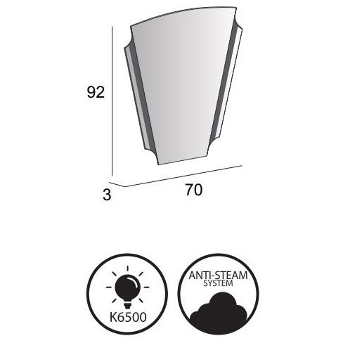 Зеркало Cezares (Цезарис) со встроенной LED подсветкой, антизапотеванием 45020, 70х2,5х92 см