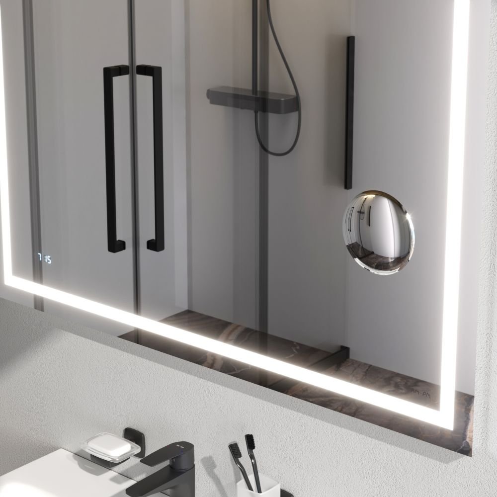 Доставка Зеркало универсальное Am.Pm (Ам.Пм) Gem с контурной Led-подсветкой, часами, косметическим зеркалом, 100, белый, M91AMOX1003WG из Москва в районы и города ЮВАО, ЮЗАО, ЮАО, Новомосковский АО, Одинцово, Подольск, Щербинка, Троицк, Строительный рынок Славянский мир, 41-й км МКАД, бывшая Мельница, Красногорск, Домодедово, Тёплый стан, Коммунарка, Мосрентген, Видное, Мамыри, Краснознаменск