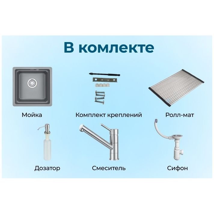 Мы сделали все возможное, чтобы сделать этот комплект максимально выгодным для вас - смеситель бесплатно прилагается к мойке. Квадратная мойка удобна в использовании и подходит для подстольного монтажа. А все это доступно по привлекательной цене. Приобретайте надежный и красивый комплект для вашей кухни!