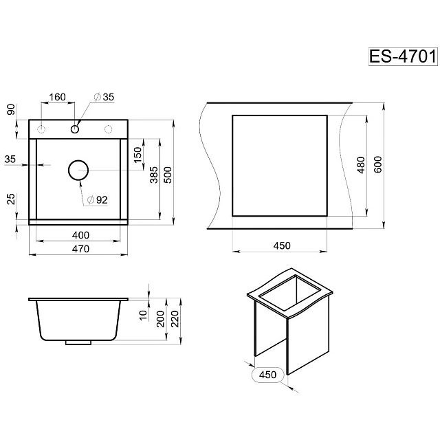 Доставка Мойка кухонная квадратная Granula (Гранула) Estetica с разделочной доской, чаша 400х385 мм, ES-4701 арктик (белый) из Москва в районы и города ЮВАО, ЮЗАО, ЮАО, Новомосковский АО, Одинцово, Подольск, Щербинка, Троицк, Строительный рынок Славянский мир, 41-й км МКАД, бывшая Мельница, Красногорск, Домодедово, Тёплый стан, Коммунарка, Мосрентген, Видное, Мамыри, Краснознаменск