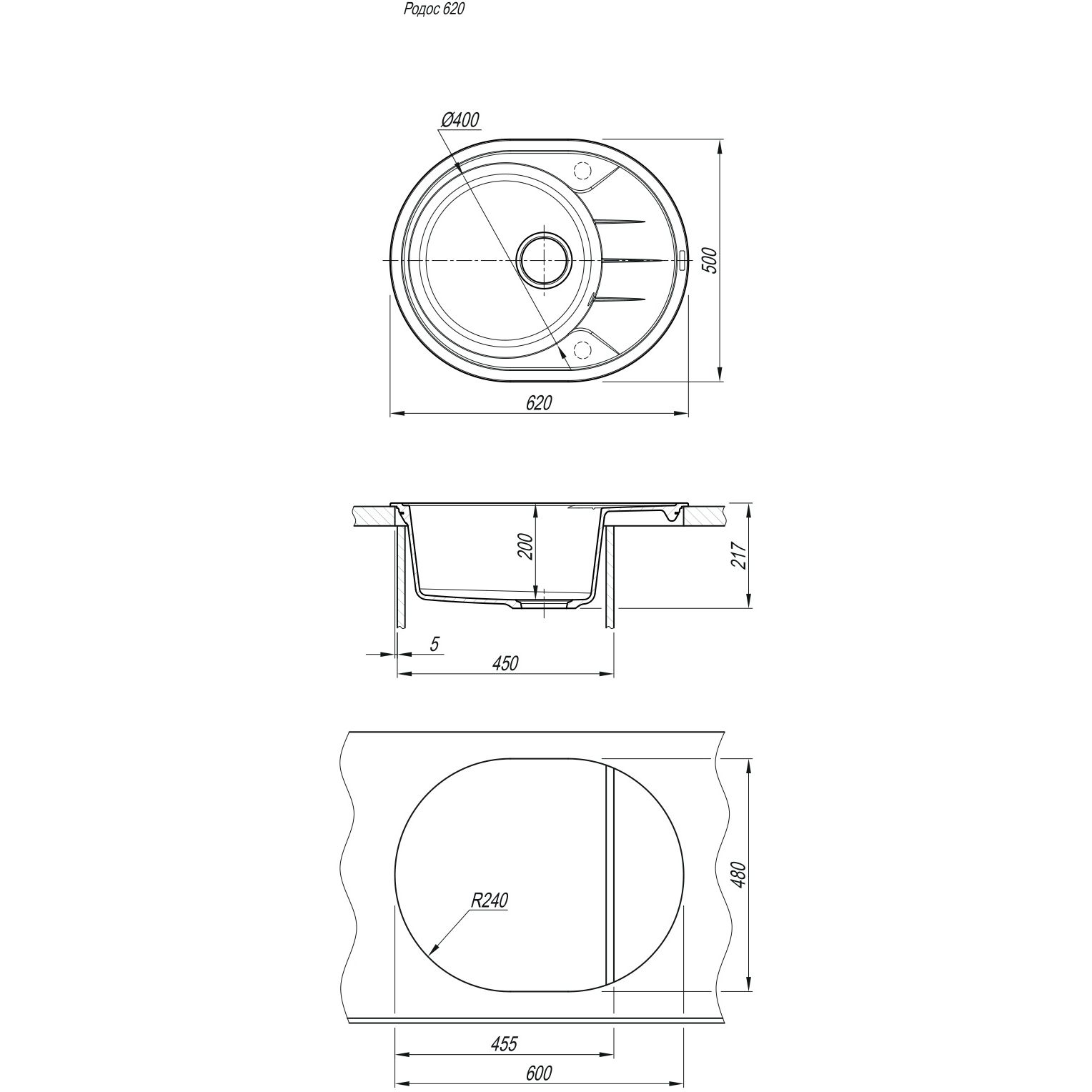 Мойка кухонная округлая Флорентина (Florentina) Родос 620 Грей (20.245.B0620.305)