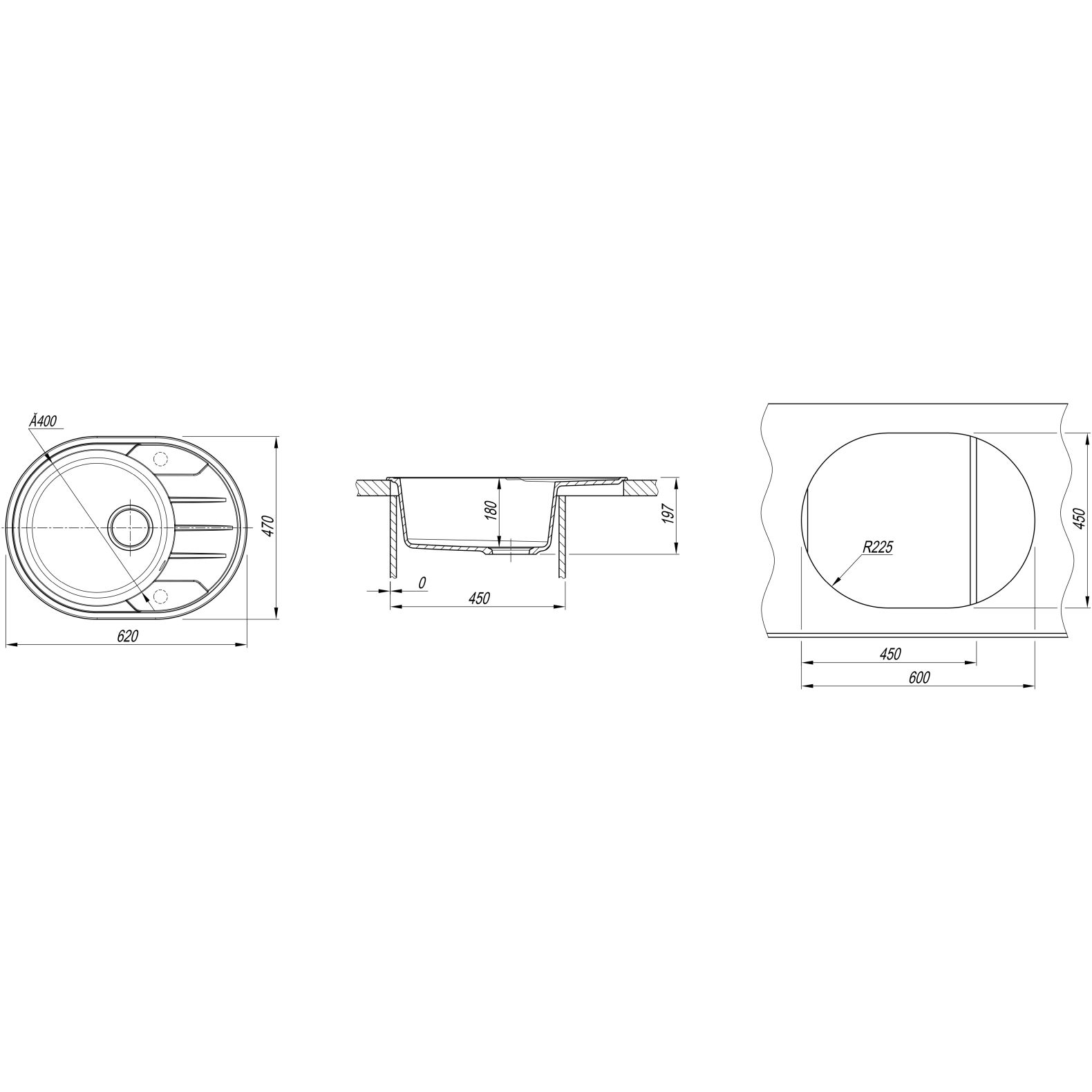 Кухонная мойка ЛИАНА 620 . Габариты мойки (ДхШхВ,мм): 620х470х197; Размеры чаши (мм): D400, глубина 180; Отлично подходит для малогабаритной кухни; Материал - литой мрамор (CM); Модель оборачиваемая.