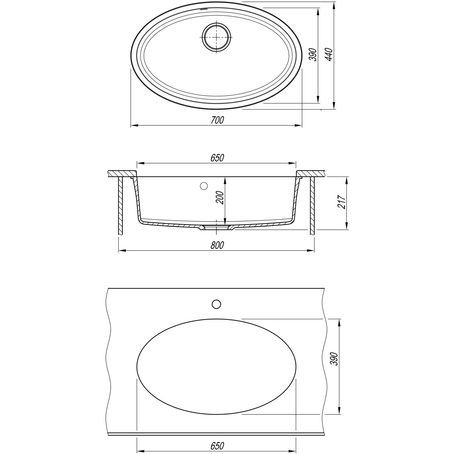 врез под столешницу:650 х 390 мм p>