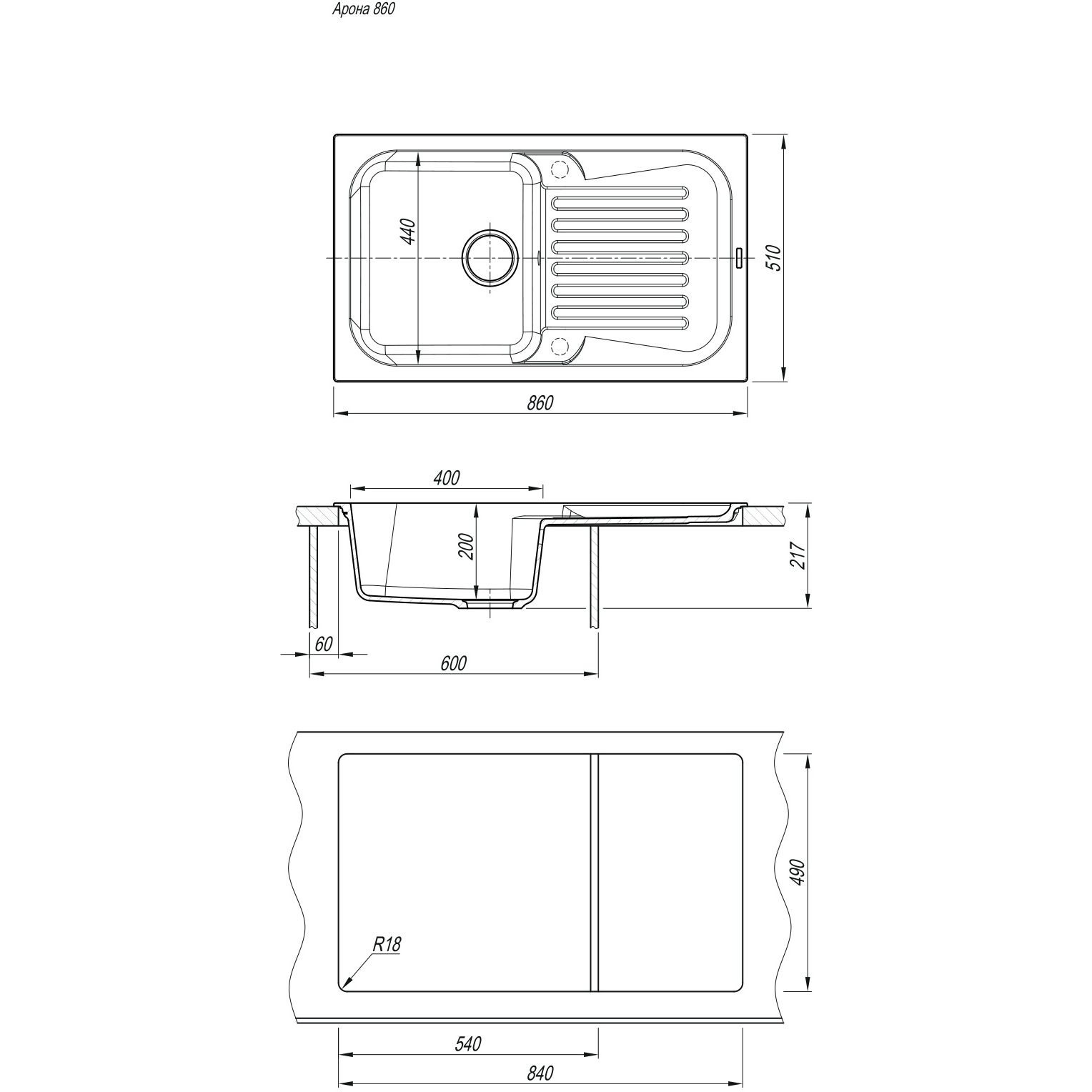 тип (основная характеристика):Мойка кухонная p>