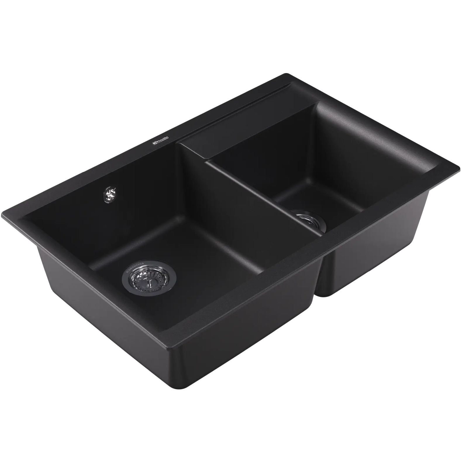 Кухонная мойка КАССИ 780 - Стильная и современная мойка; Две чаши разных размеров; Широкая площадка под смеситель и аксессуары.