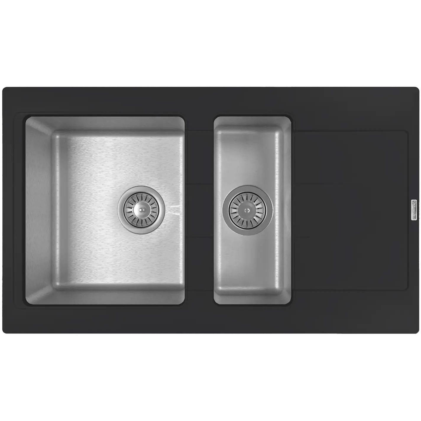Кухонная мойка КОМБИ 860К - Материал столешницы мойки - кварцевый композит; Материал чаши мойки - нержавеющая сталь марки AISI 304, толщина 1 мм Габариты изделия (ДхГхВ): 860х510х235 мм В комплект входит отводная арматура с двумя выпусками 3 ½” (D=90 мм) и переливом, набор крепежей, трафарет; Модель оборачиваемая.