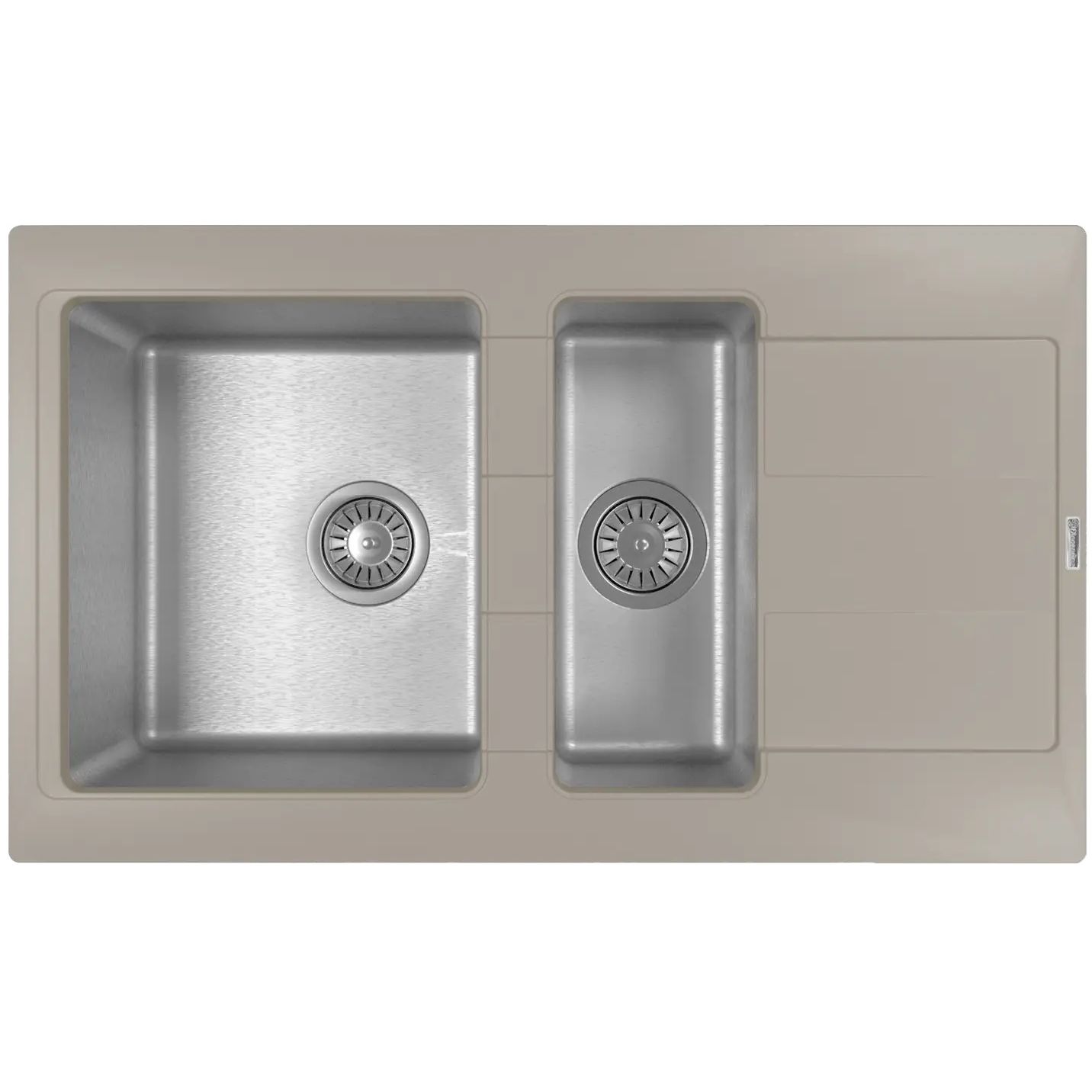 Кухонная мойка КОМБИ 860К - Материал столешницы мойки - кварцевый композит; Материал чаши мойки - нержавеющая сталь марки AISI 304, толщина 1 мм Габариты изделия (ДхГхВ): 860х510х235 мм В комплект входит отводная арматура с двумя выпусками 3 ½” (D=90 мм) и переливом, набор крепежей, трафарет; Модель оборачиваемая.
