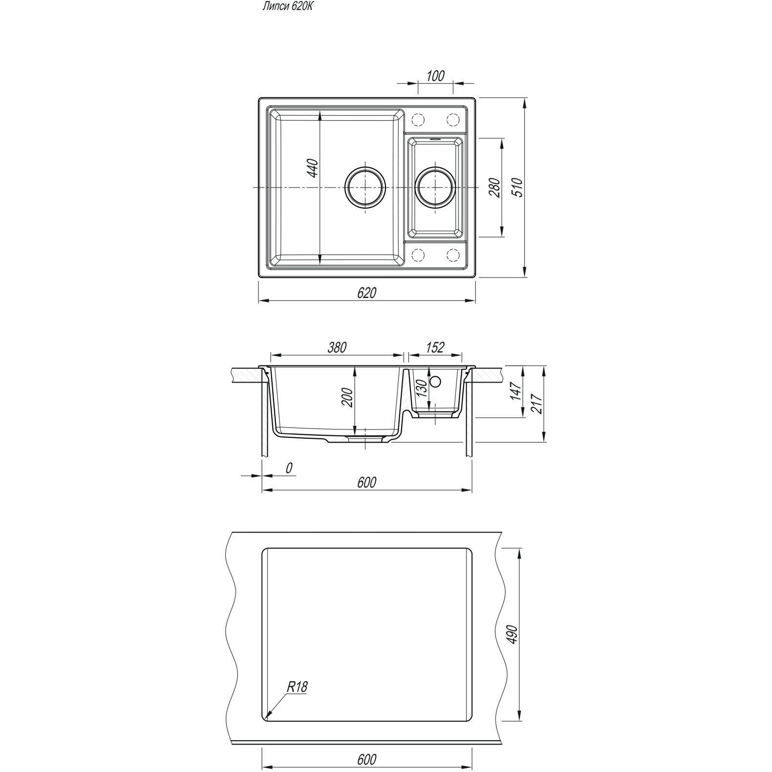 Врез под столешницу:600х490 мм p>