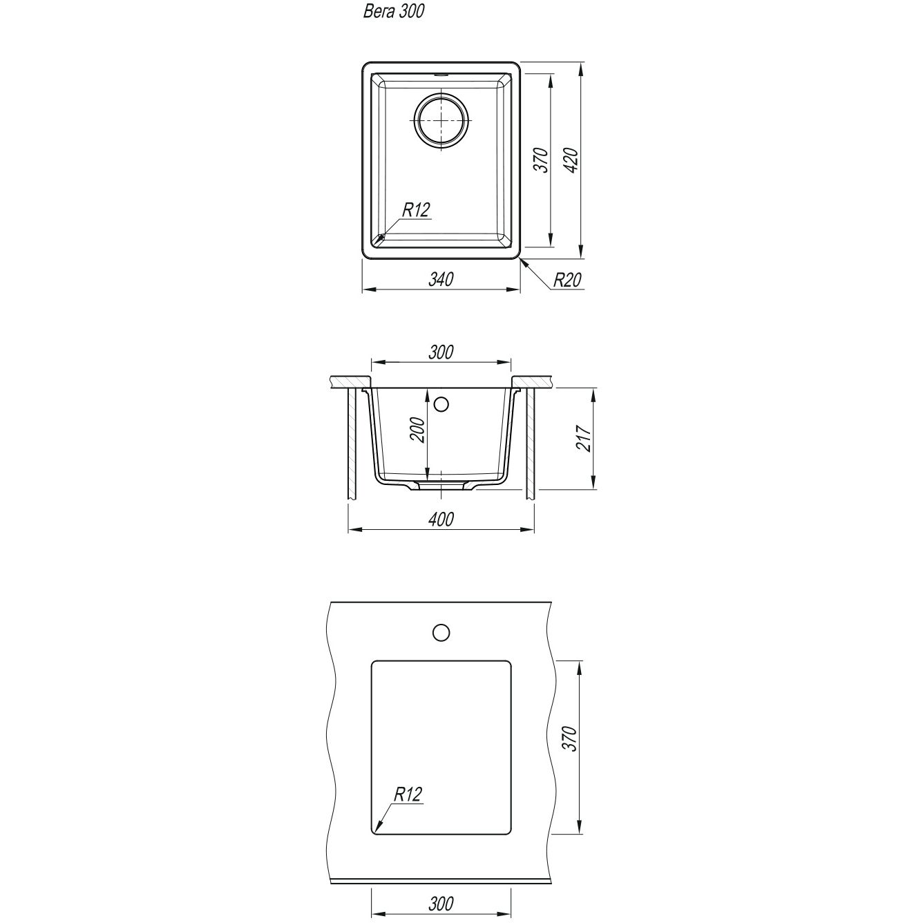 Мойка кухонная прямоугольная Флорентина (Florentina) Вега 300 Серый шелк (22.305.A0300.307)