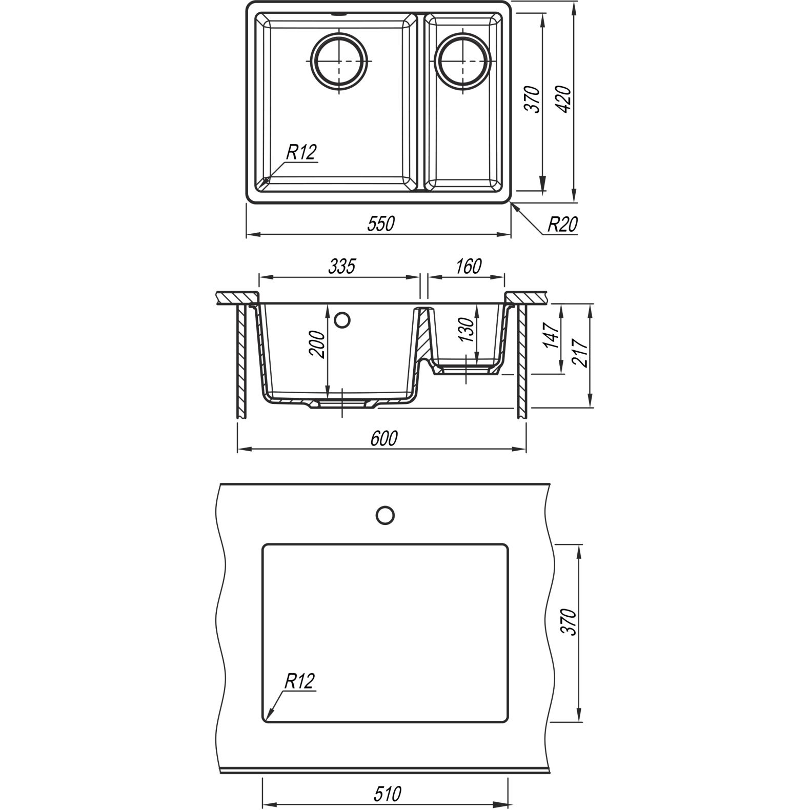 Кухонная мойка ВЕГА 335/160 - Стильная и современная мойка в блок 60 см; Основная и дополнительная чаша разной глубины; Максимальный комфорт и высокое качество.