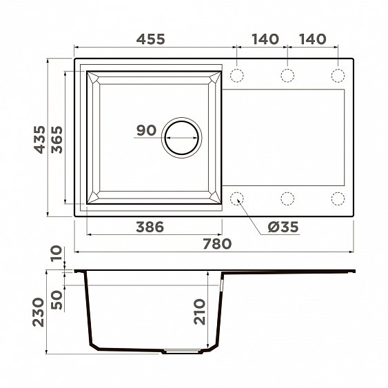 Лаконичная врезная мойка Omoikiri Sakaime из искусственного камня с оборачиваемой чашей. Изделие состоит из глубокой квадратной чаши с донным клапаном и просторным крылом для сушки. Благодаря своему уникальному материалу, сочетающему натуральный гранит и акриловую смолу, мойка обладает особой стойкостью к образованию любых видов грибков.