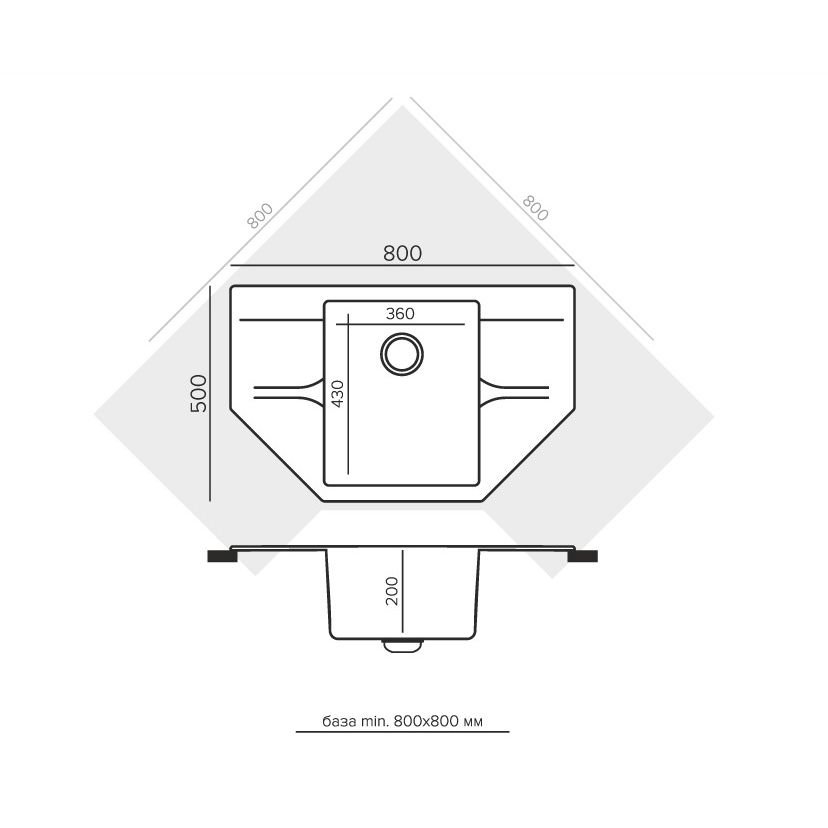 Мойка кухонная трапецевидная, угловая Polygran (Полигран) Riff-800 №316 Космос (855113)