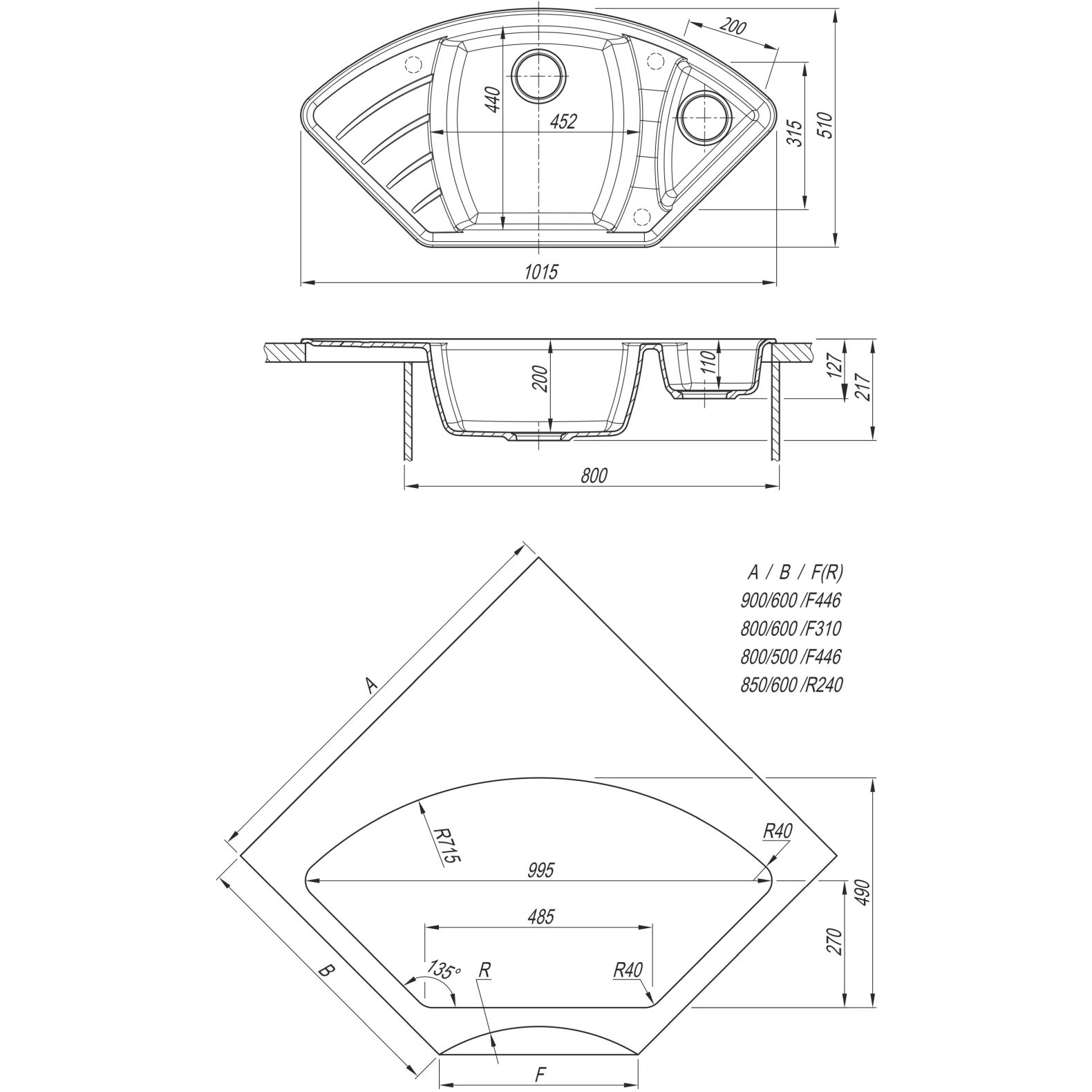 врез под столешницу:995х490 мм p>