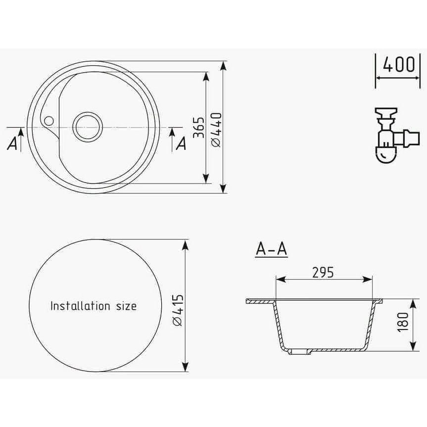 Мойка кухонная Ulgran (Улгран) из искусственного мрамора круглая U-500, цвет: ультра-белый, база: 41.5х41.5 см, арт. U-500-341