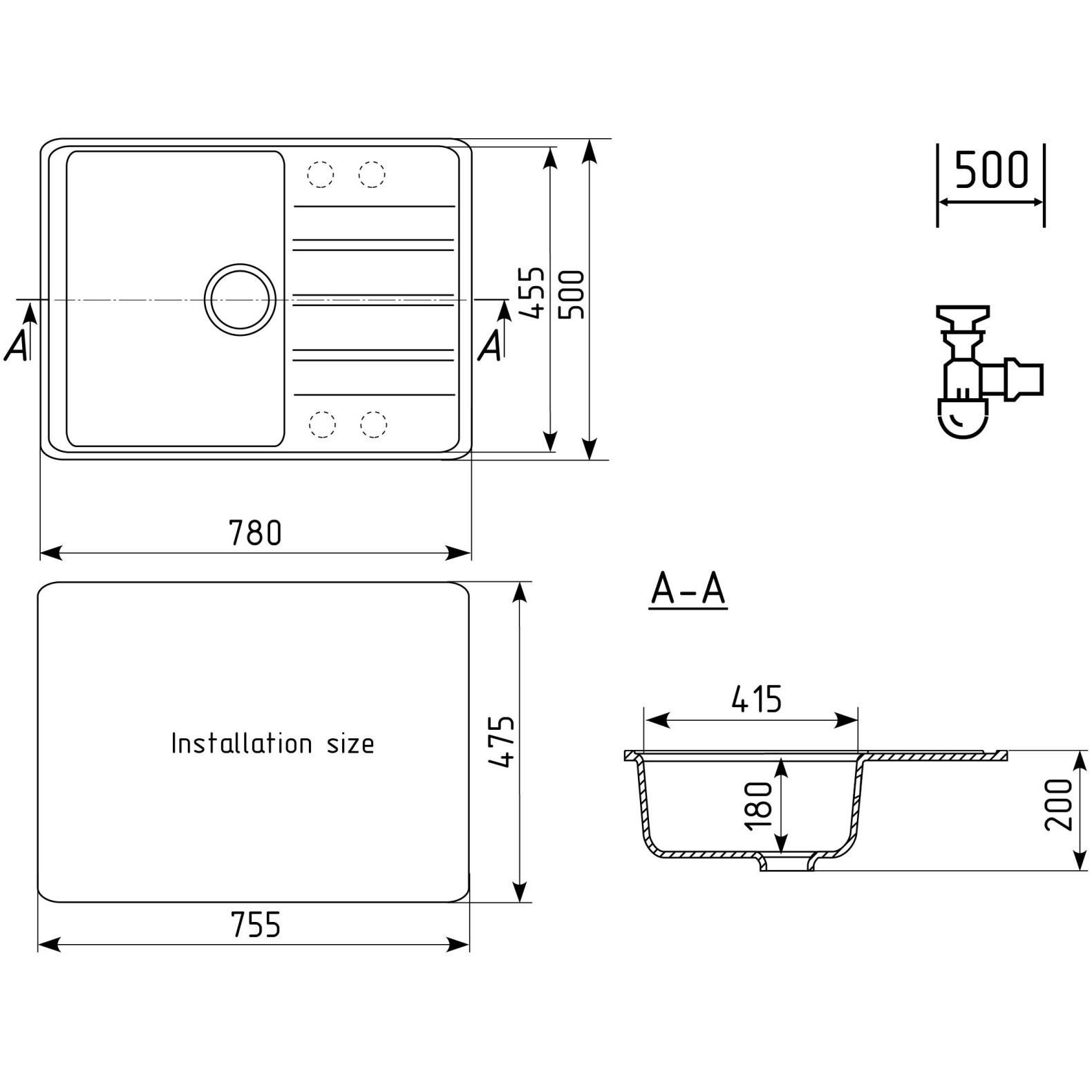 Мойка кухонная прямоугольная Флорентина (Florentina) Вега 500 Черная (22.320.D0500.102)