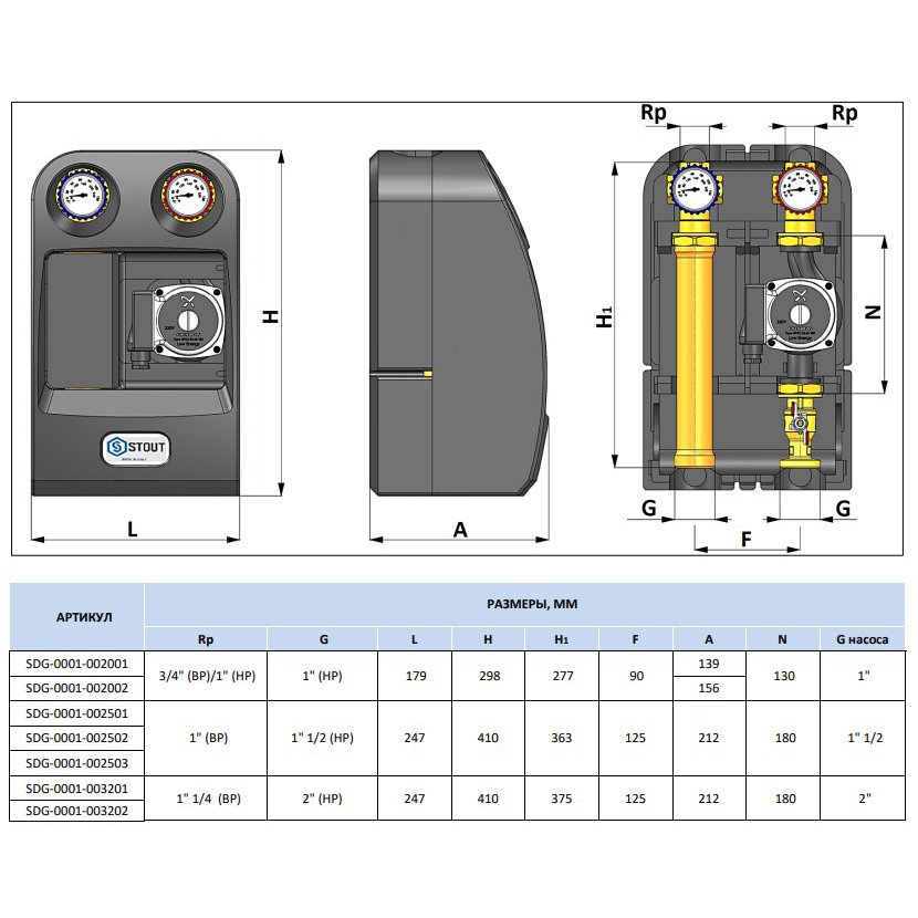 Насосная группа Stout (Стаут) с прямым контуром 1 дюйм без насоса в теплоизоляции (SDG 0001 002501)