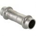 (VTi.903.I) Двухраструбная пресс-муфта из нержавеющей стали предназначена для соединения тонкостенных стальных труб в системах водоснабжения, отопления, других инженерных и технологических установках с рабочей температурой до 120 °С. Номинальное давление – 16 бар.