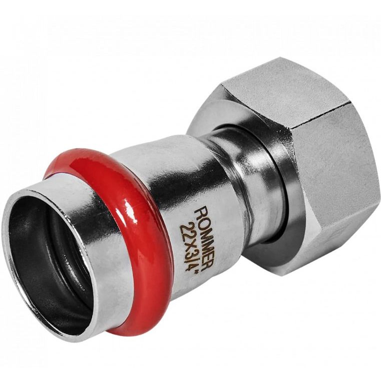 Переходник Rommer (Роммер) с накидной гайкой из нержавеющей стали прессовой ВПр-ВР 22х3/4 (RSS-0026-002234)